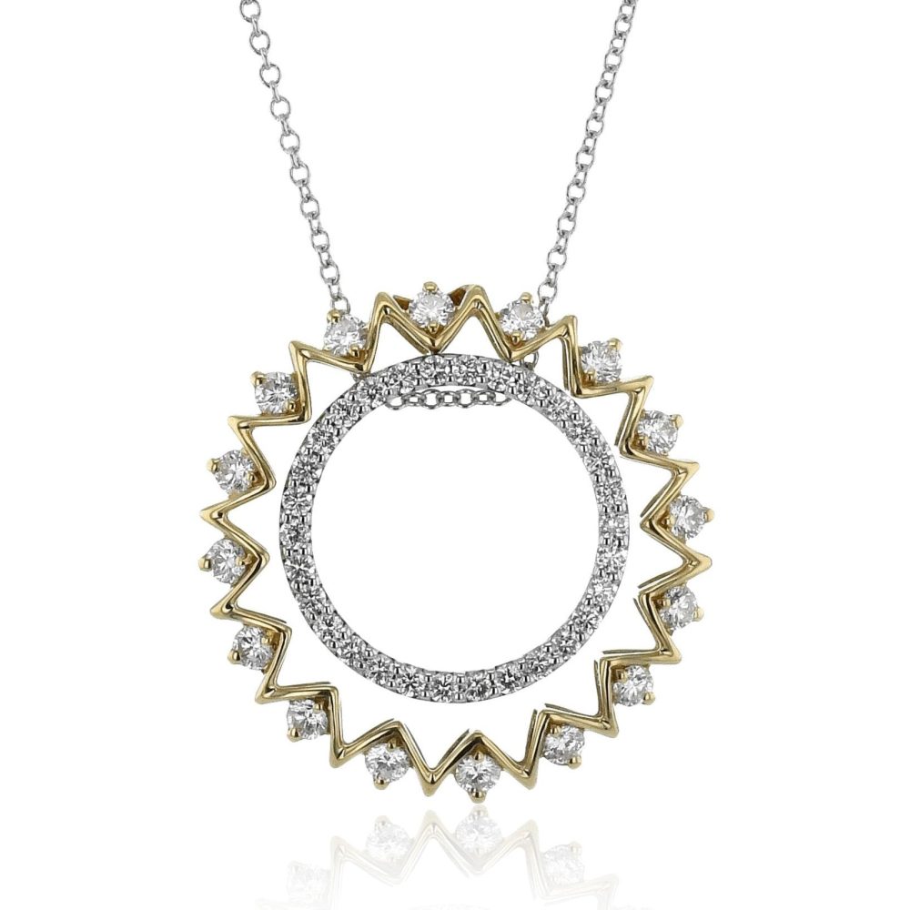 This elegant gold necklace features a beautiful sun pendant adorned with sparkling diamonds.